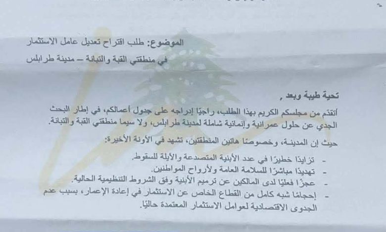 كتب النائب د. ايهاب مطر *في إطار متابعتنا المستمرّة لقضية الأبنية المهدّدة بالانهيار في طرابلس، وإدراكًا منّا بأنّ هذا الملف…
