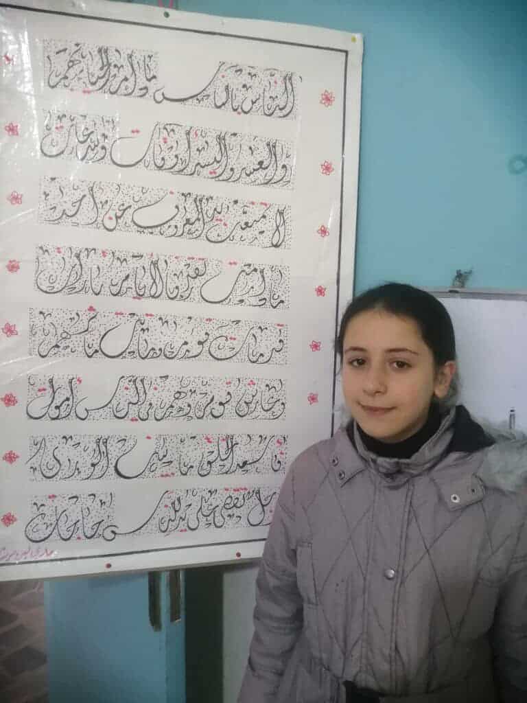 وفي عمر الثانية عشرة، كان أول تكريم رسمي ينتظرها من وزارة الثقافة السورية تقديرًا لإحدى لوحاتها، لتكون تلك اللحظة شرارة أحلامٍ أكبر. وبعد عامٍ واحد فقط، تمّ اختيار عملٍ آخر لها للمشاركة في معرضٍ دولي للخط العربي في الصين، ما شكّل نقلة نوعية في مسيرتها الفنية.