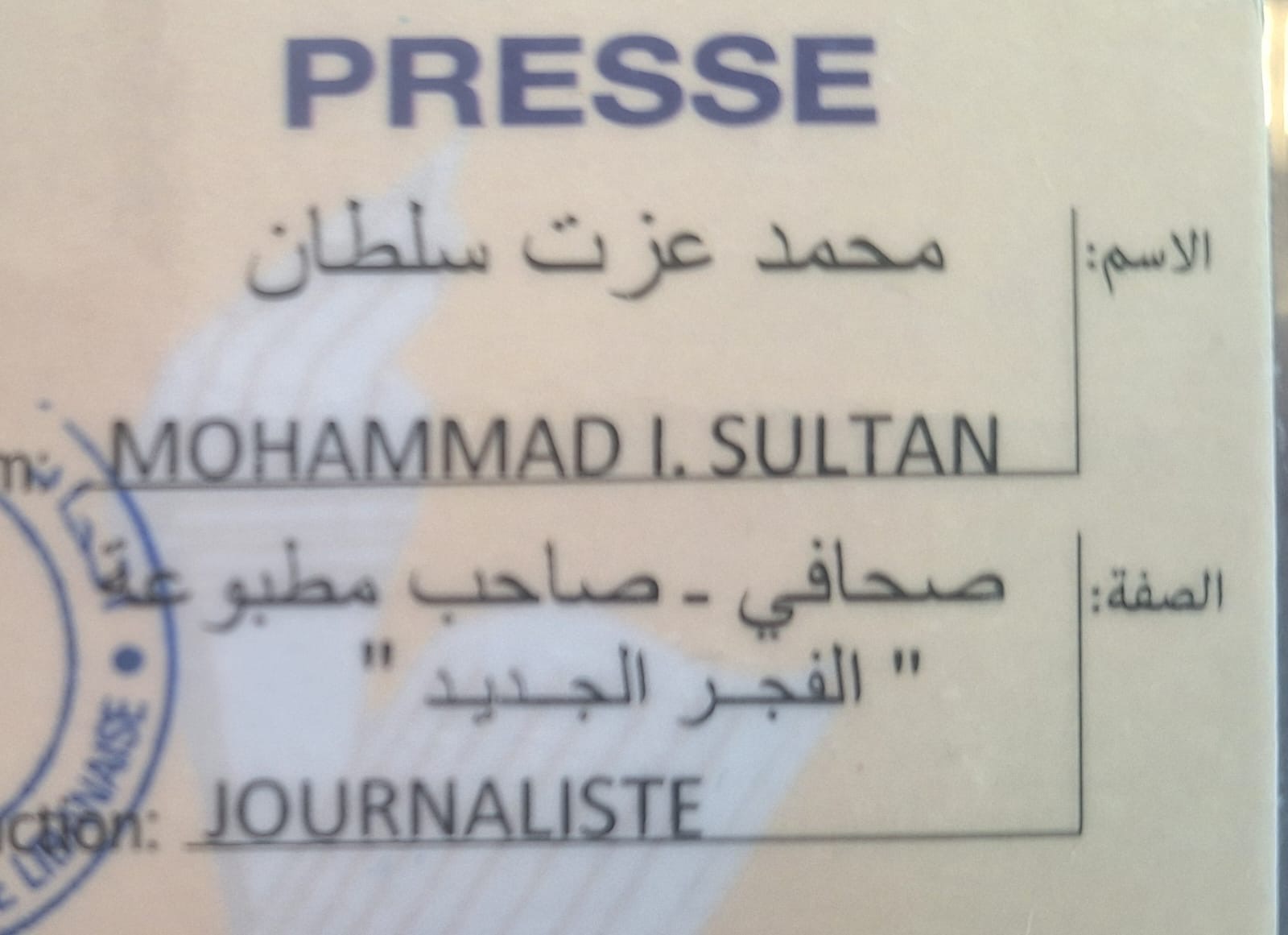 انا : صحافي وهذه بطاقة انتسابي لنقابة الصحافة