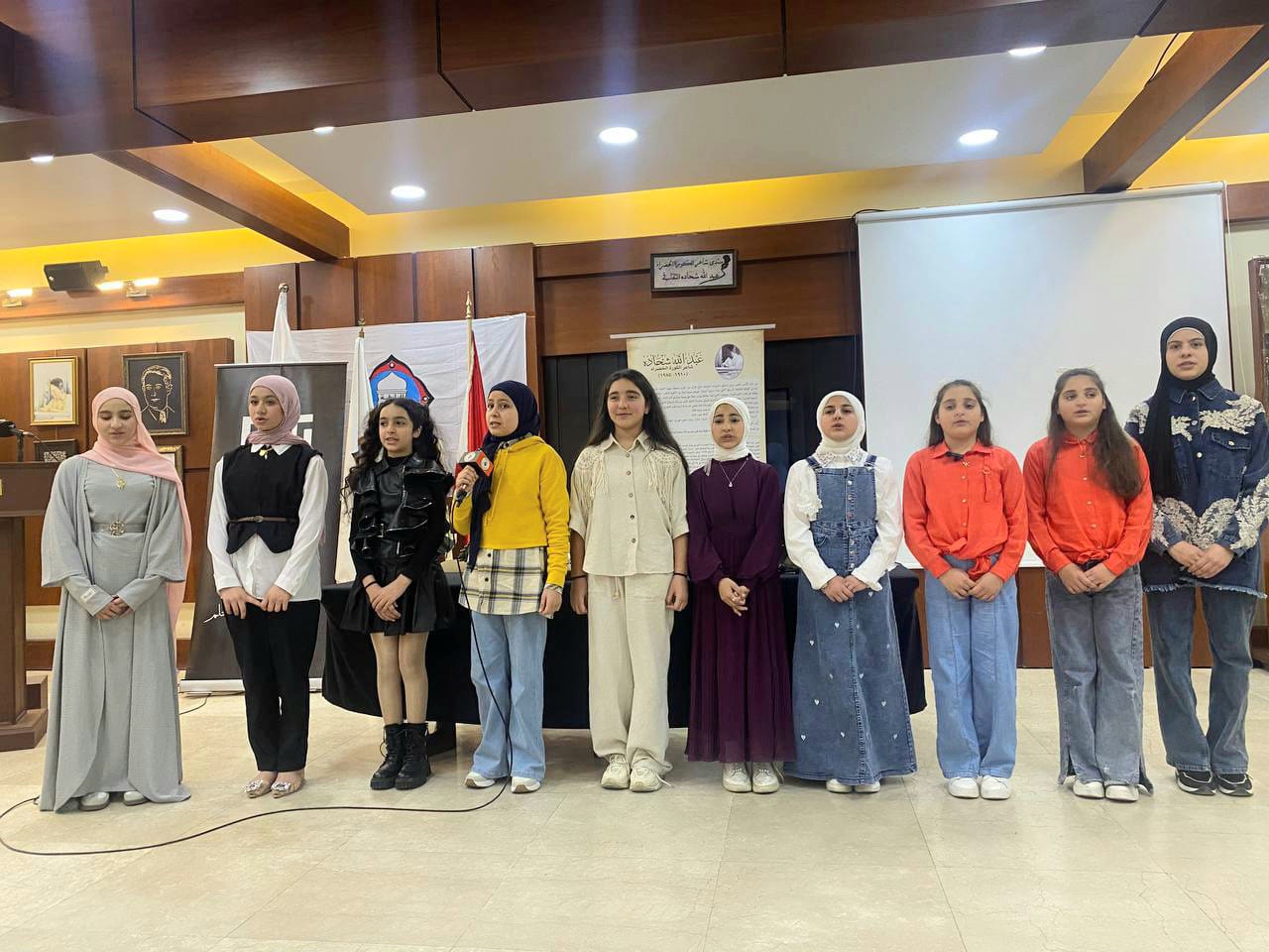 افتتحت الأمسية بالنّشيد الوطني ونشيد أسوَد بصوت صغارها، وبأداء منظّم لطيف رتّلوا قصيدة “يا عمّنا” للشاعر عبدالله شحادة نشيداً.